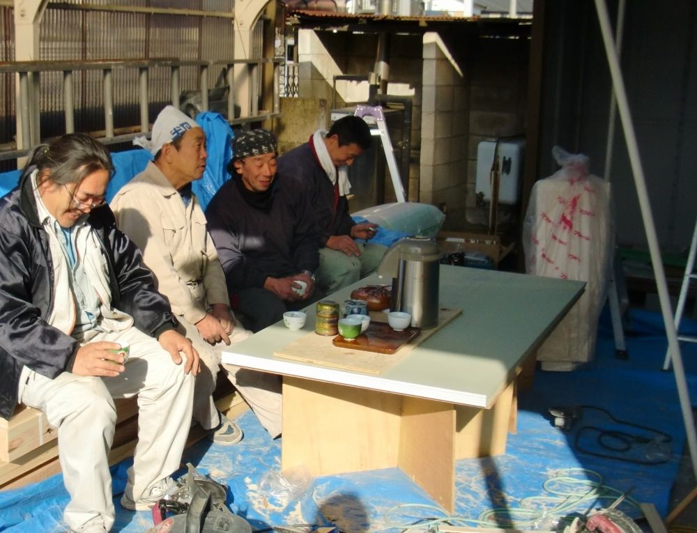 着々と木工事進行中です。しばし休憩し、この後の工事もがんばります!!