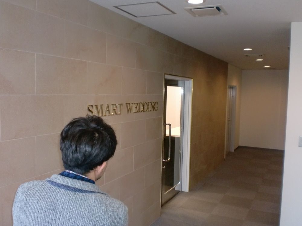 受付背面には間接照明を仕込んだパネルを取り付けました。