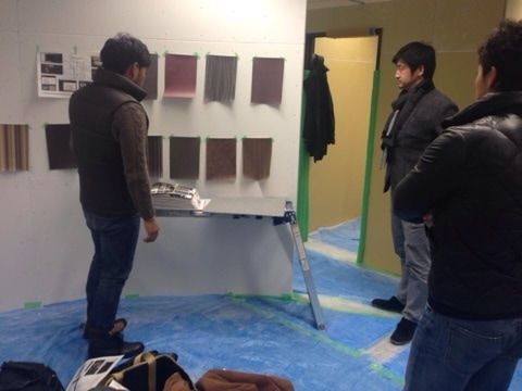 ・・・実はこれ県内大雪の夜、建物の外では吹雪が吹き荒れる極寒の土曜日。現場では皆でクロスを見ながら総勢8名による熱い打ち合わせにより決めた色味です。最高です。