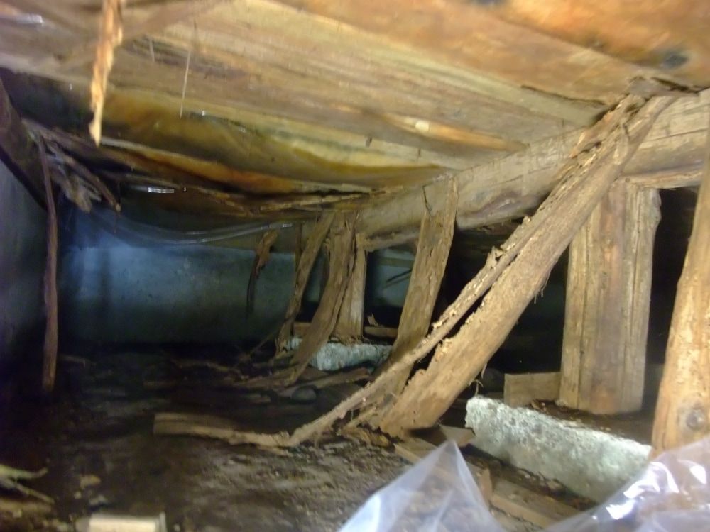 元々が湿気の多い土地だということもあり、大きく床を支える下地が崩れてしまっています。さてさて、どのように修正してステキな住まいにリフォームしていきましょう。