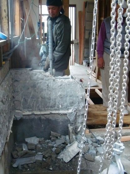 水回りを先行して仕上げるため、トイレ、浴室の解体から始めます。