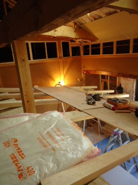 ロフトの床下地もできあがり、着々と工事が進んでおります。