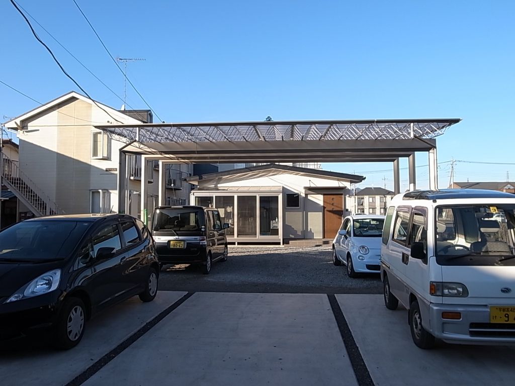 ご家族の車4台駐車しても、まだまだ余裕な大きな庇が取り付けられ、建物のリフォームをより一層引き立たせてくれるようになりました。