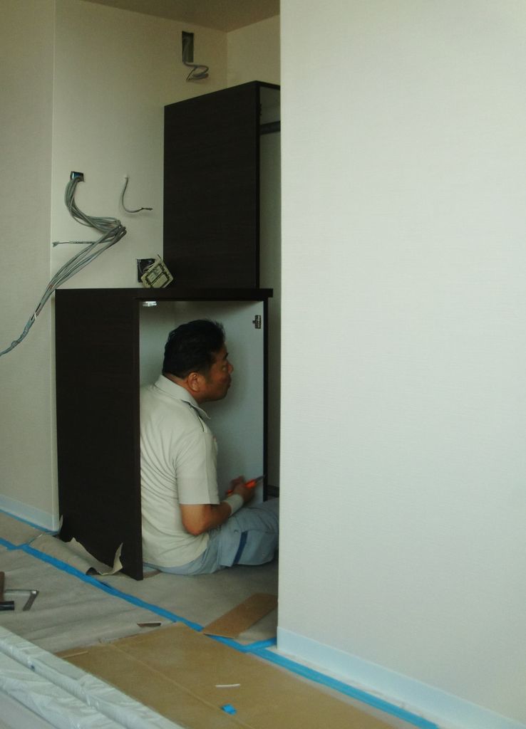 何をやってる!?家具屋さん?(←造作家具の奥のほうに仕掛けを仕込んでいます。)
