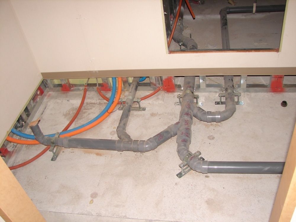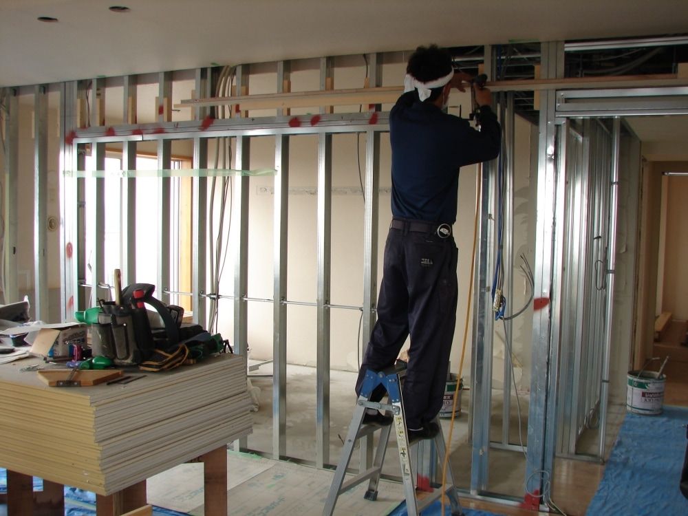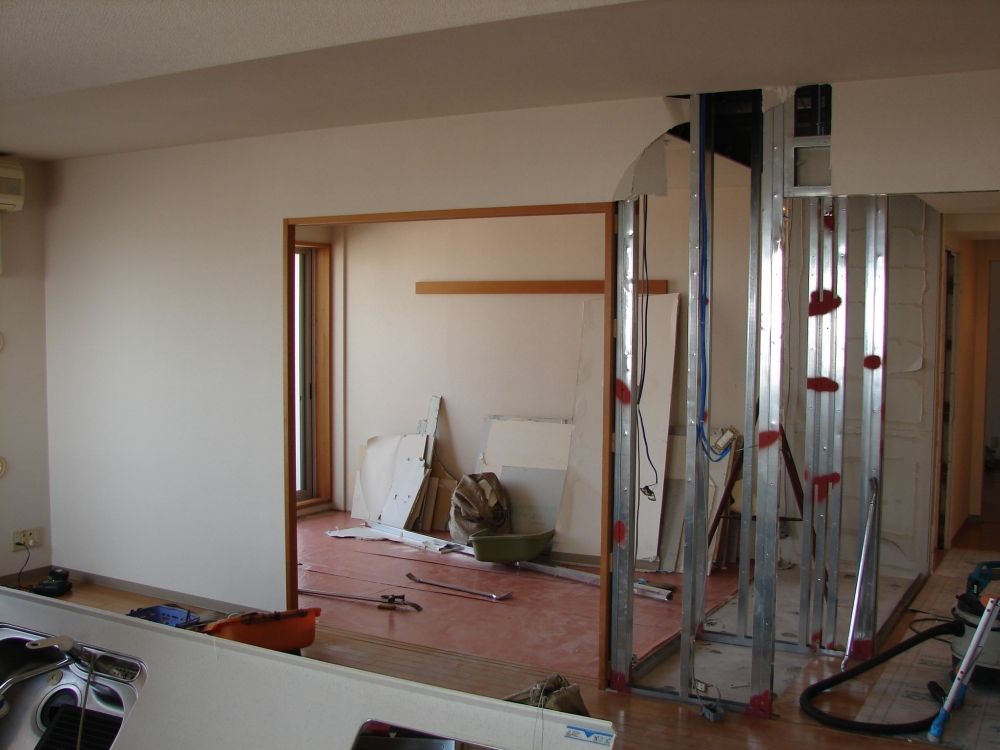 お風呂やキッチンなどの設備配管も新しくし、間仕切りの位置を変える工事が進んでいます。