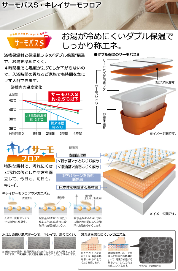 今のシステムバスは、浴槽の断熱もすばらしく、4時間たっても2.5℃しか湯温が下がらないという商品もあります。