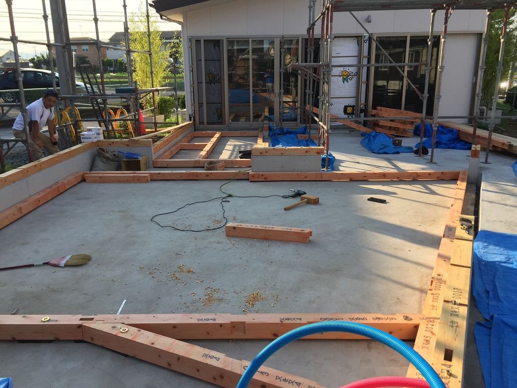 増築部分も車いす対応とするため、通常よりも床を低く造って行きます。