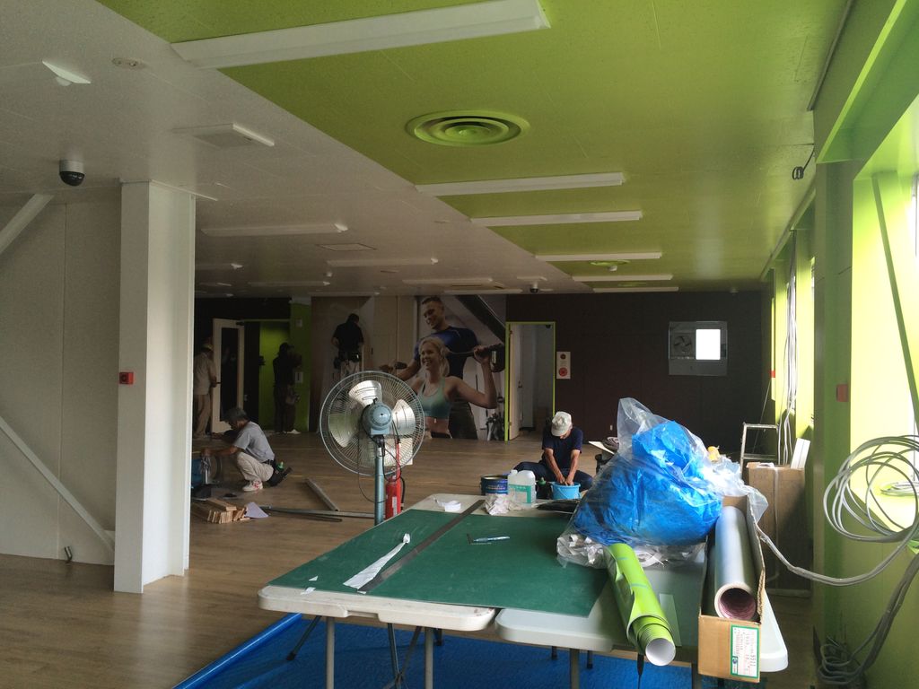 真夏でも現場は元気に進んでおります。フィットネスのゲンバには、汗が似合いますね。