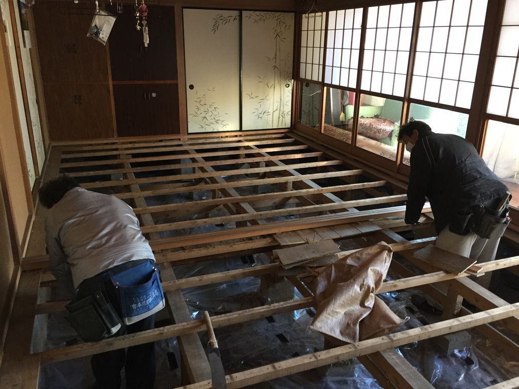 使用していないお部屋だったこともあり、床下の湿気や歪み・傷みも生じていました。