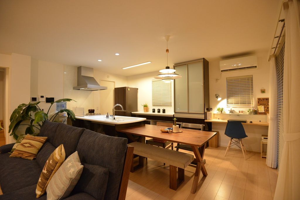 アクセントクロスでインテリアテイストを変え、キッチン隣には小さなデスクスペースを設置。