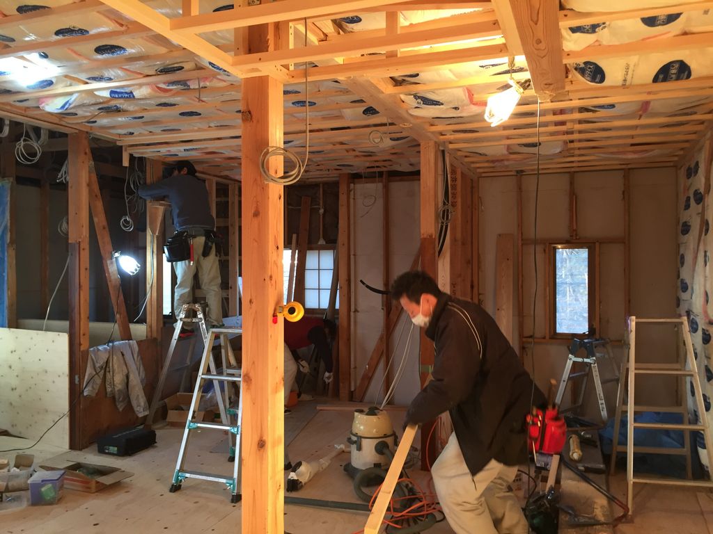 間取り変更のために柱を抜き耐震補強も行い、キレイに使いやすくそして強く生まれ変わる新居の完成が待ち遠しいですね。
