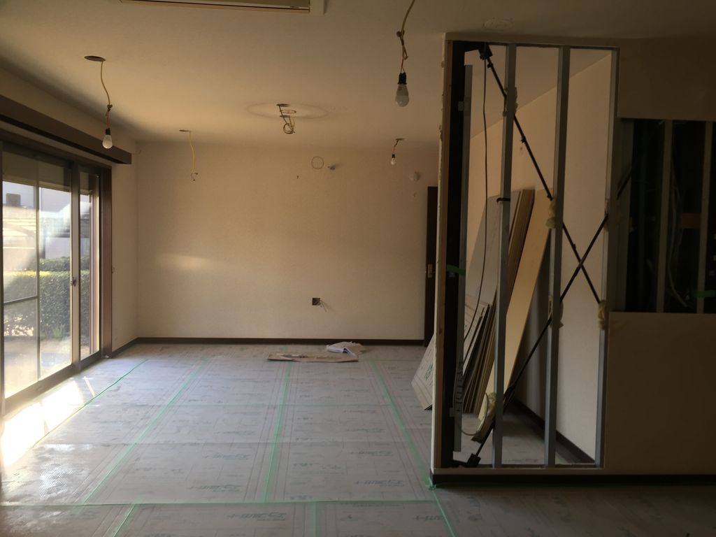 解体後、軽量鉄骨の壁下地と揺れ止めのブレース部分がむき出しになっているのが確認頂けます。