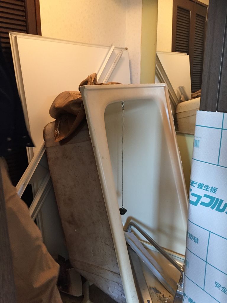 解体は床や壁だけでなく、ユニットバスや洗面台、キッチンも取り除かれます。