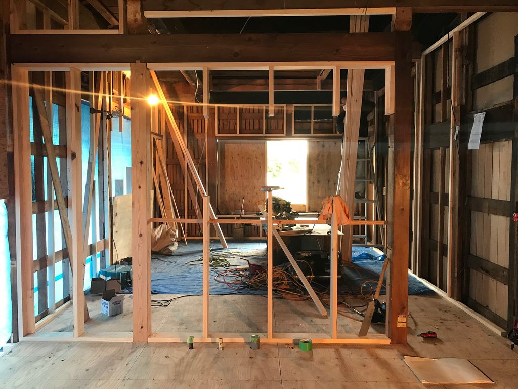 解体工事も順調に進み、間取りを変えるために必要な柱の入れ替えも行っています。