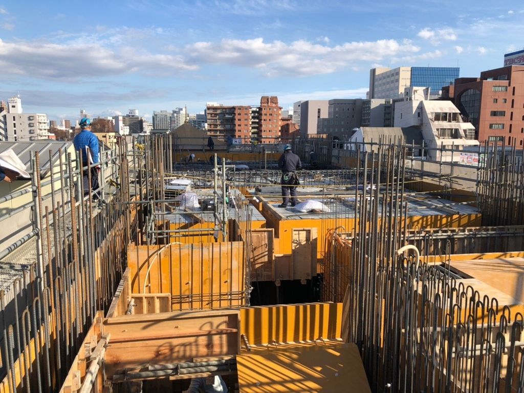 5階建て最上階のコンクリート打設まで、あともう少し。