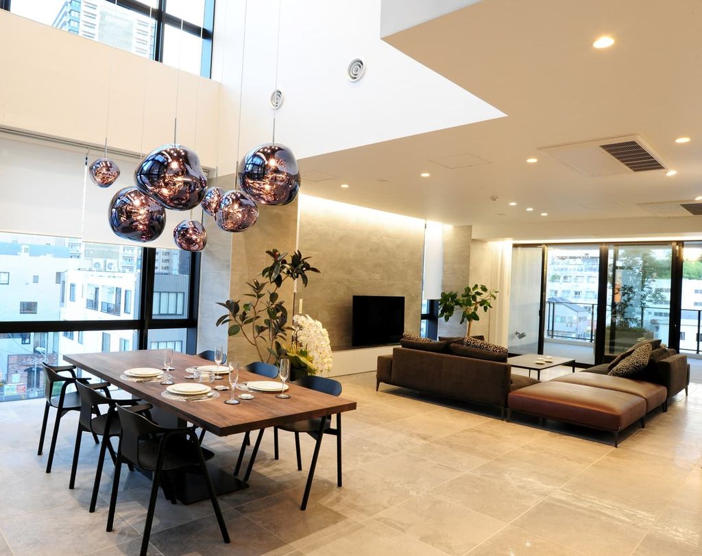 開放的な吹き抜けを持つLDKは、都会的でとても贅沢な空間に。