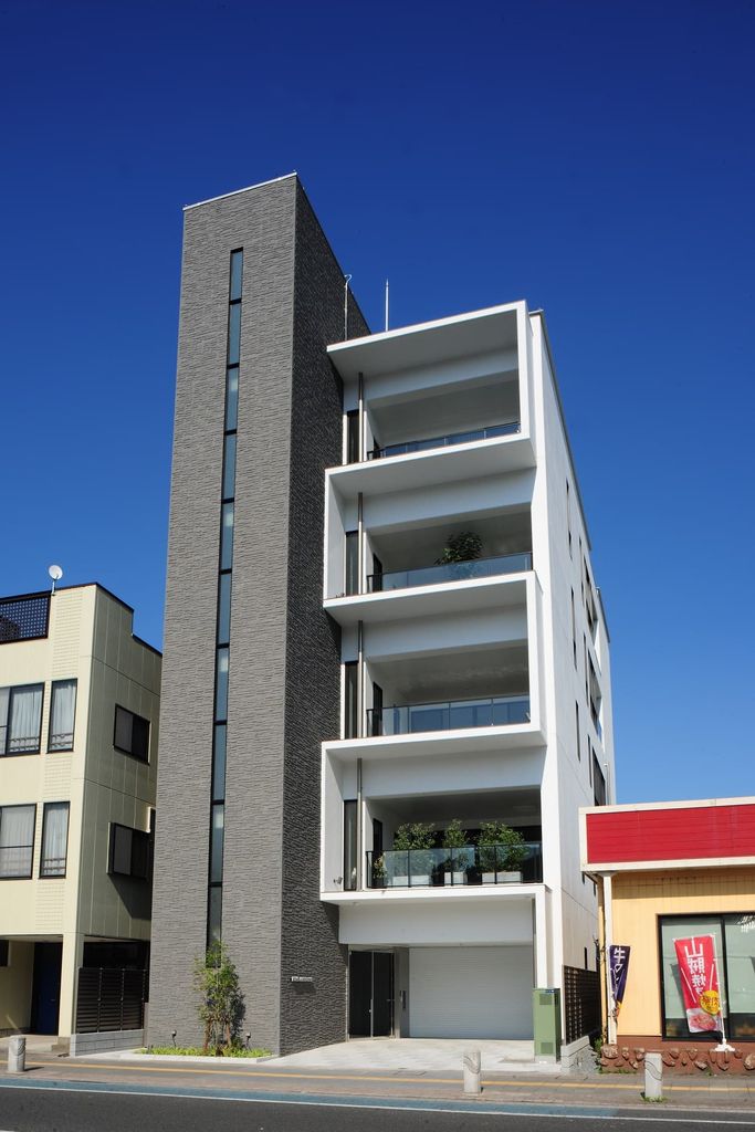 外観は、パワーのPと数字の5(5階建て)にも見えるような、スッキリとしたイメージに。