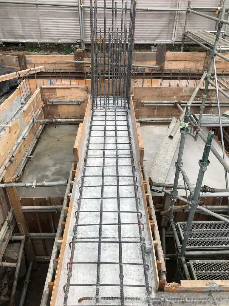 ご覧のように、太い鉄筋が幾重にも組重ねられ、流し込まれたコンクリートと一体になり、重厚な基礎が完成していきます。
