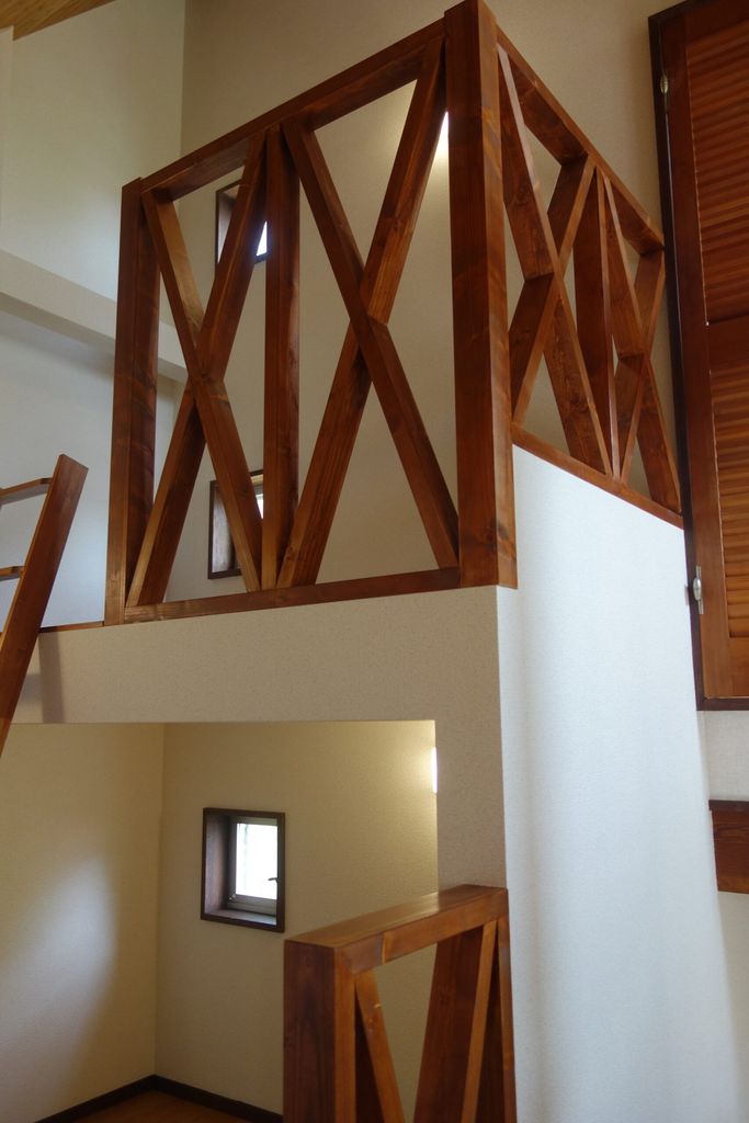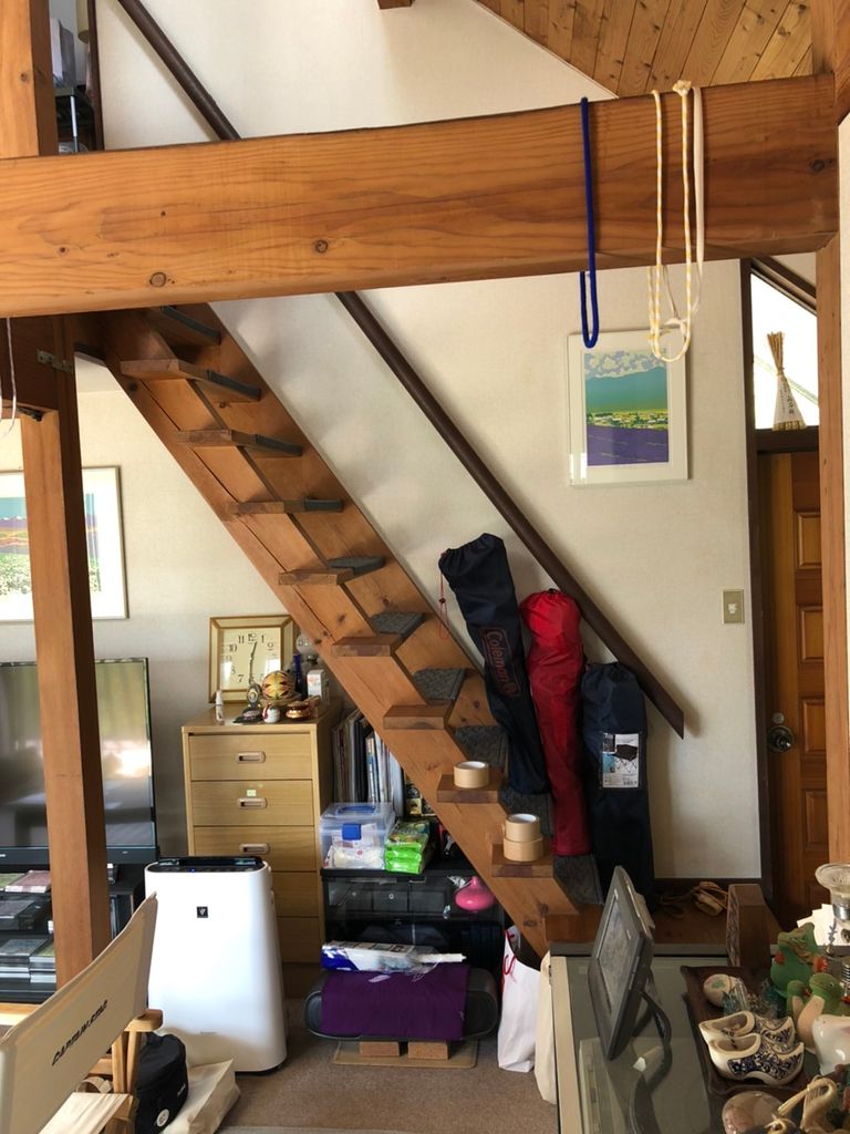 大きく変わる点は、階段を新たに架け替える所です。ログハウス調のロフト階段は角度も急な直階段(一度も曲がらず真っ直ぐに降りる階段のこと)。危険性を感じていらっしゃいましたので、架け替えをお勧めしました。