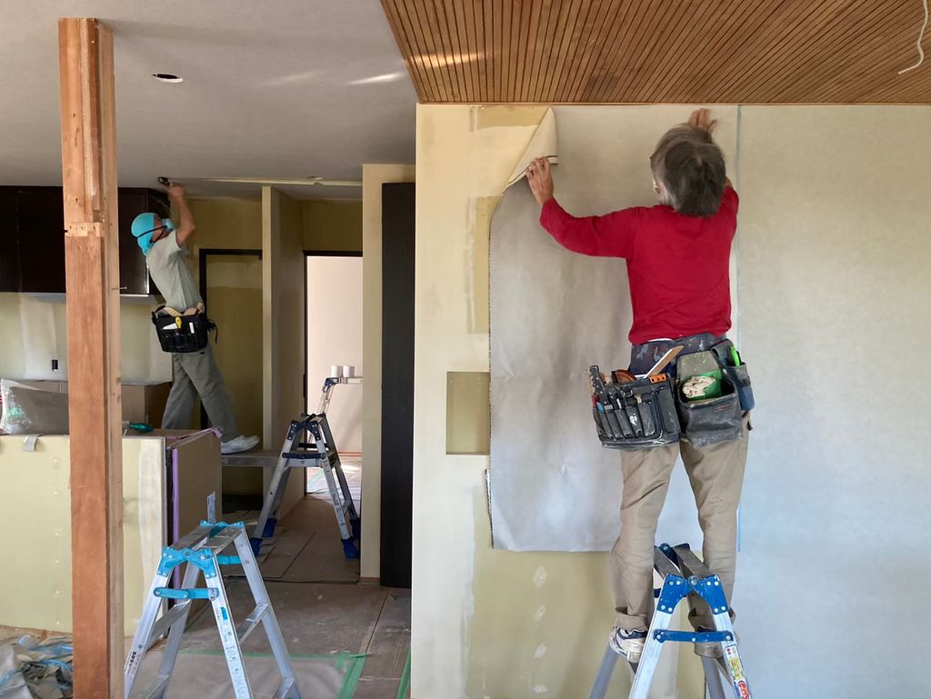 大規模リノベーションの仕上げ工事では、数多くの職人スタッフが導入されます。