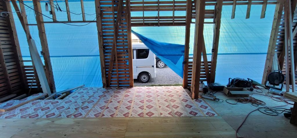 屋根の形状から、小屋裏の空間が広すぎ(天井が高すぎ)で、冷暖房効率も悪いので、こちらもデザインを加え対応していきます。