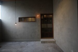 大谷石の雰囲気を活かし、モルタルや木を中心にデザイン。