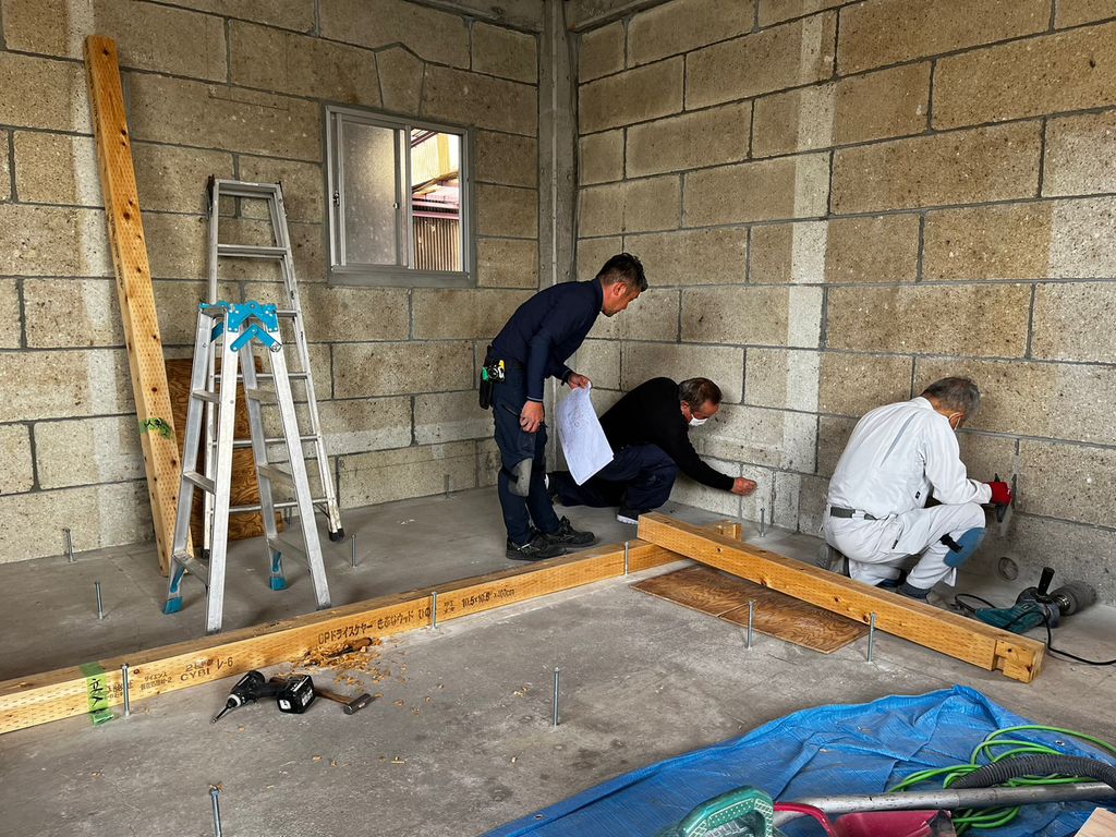 子育てママの夢を実現すべく、現場では、熟練の技を持った建築男子たちが汗を流しております。