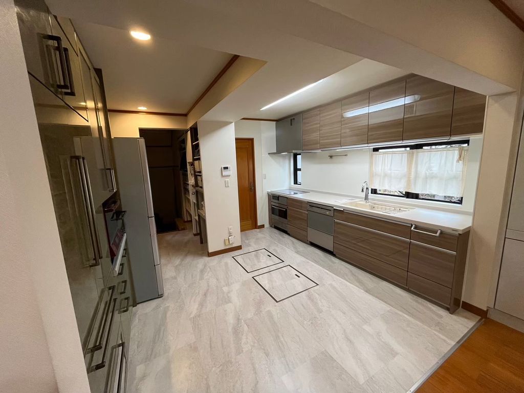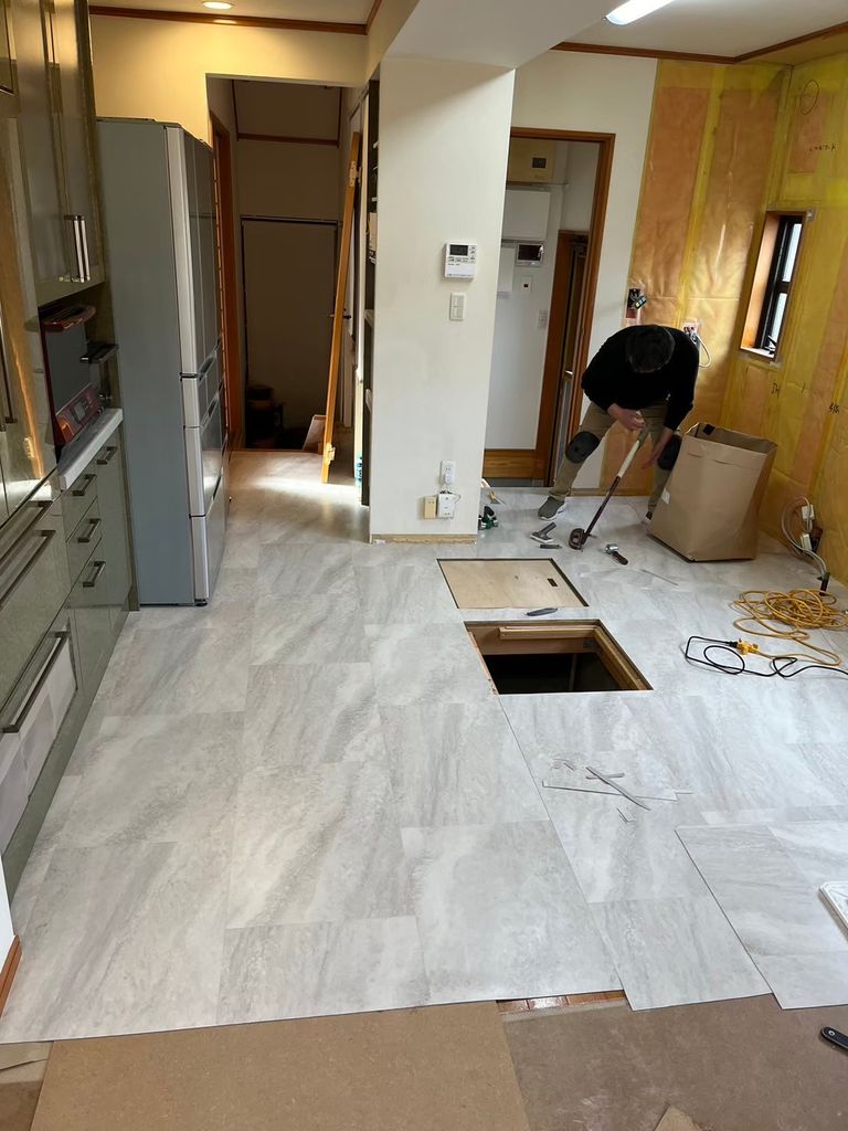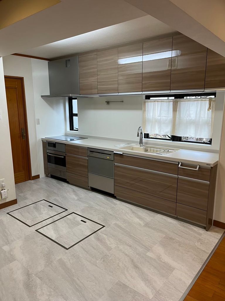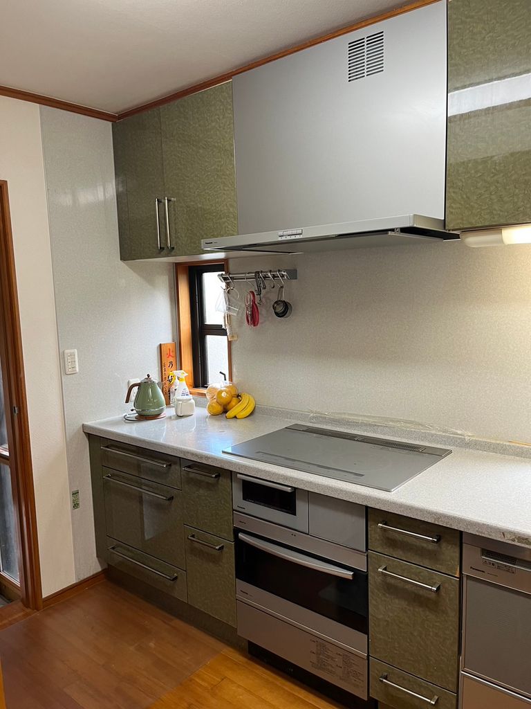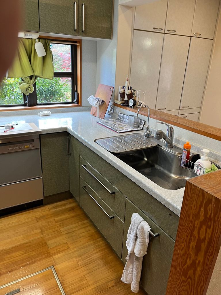 キッチンを設置する位置を大きく変えることはせず、カウンターの撤去やインテリアコーディネートで、広く感じて頂けるような空間を造っていきました。