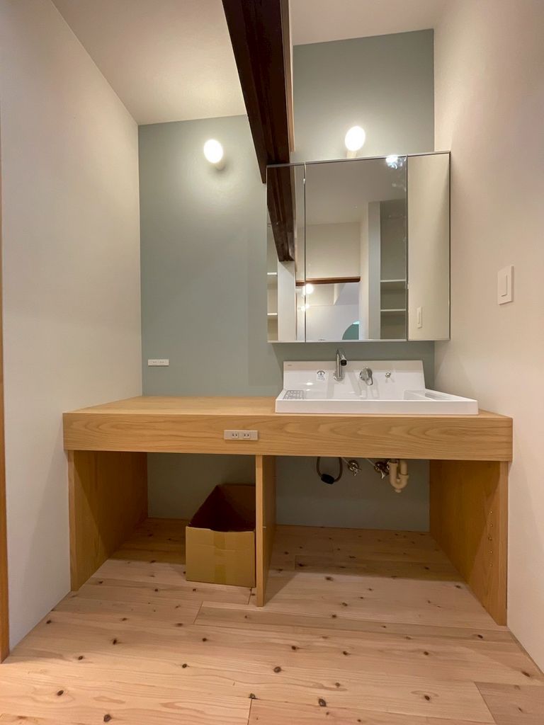 子世帯はシンプルで機能的なデザインを取り入れ、古民家ならではの木の質感と調和する内装に。