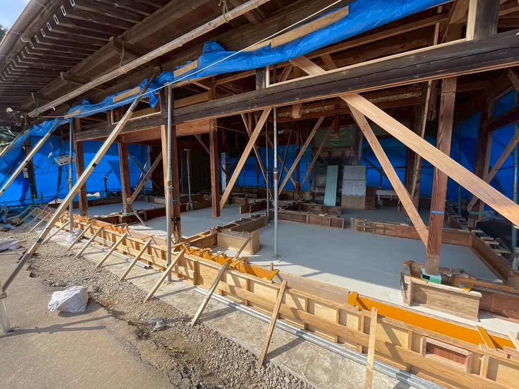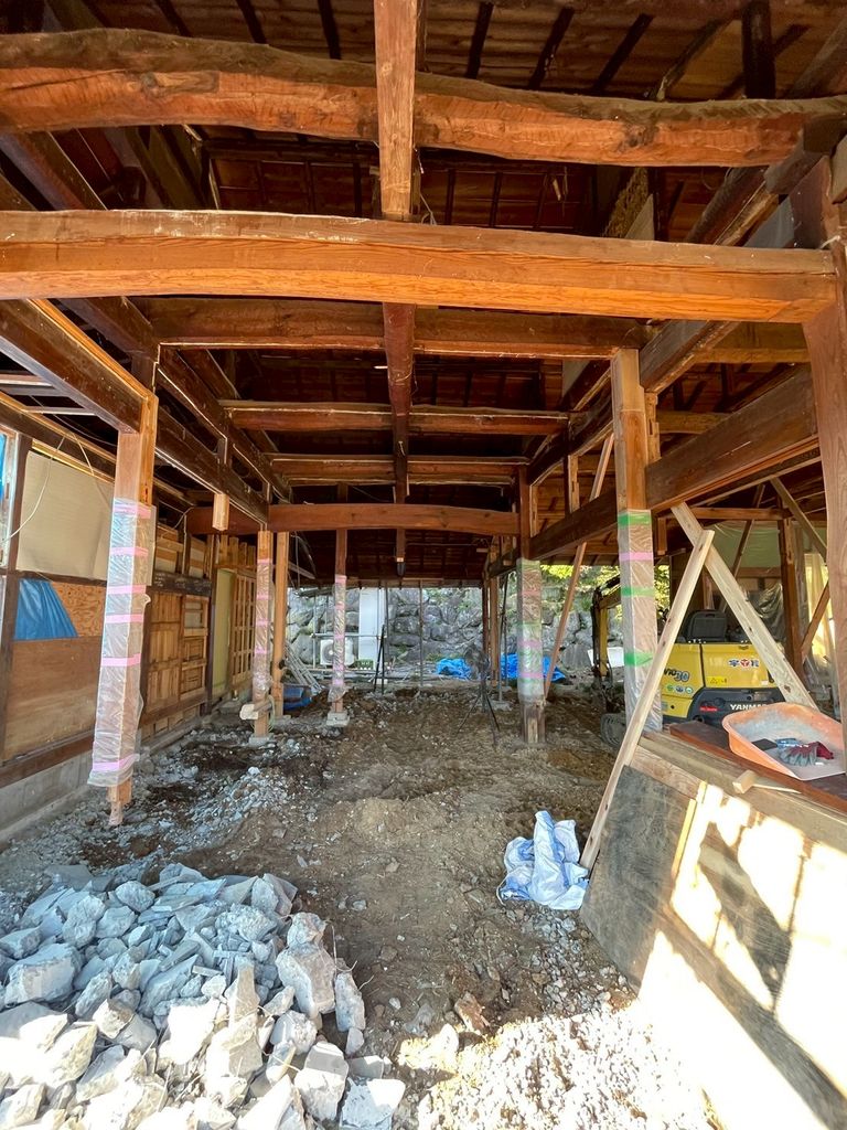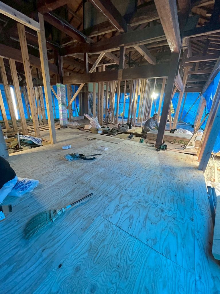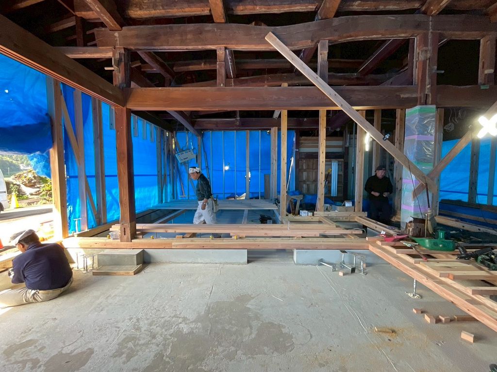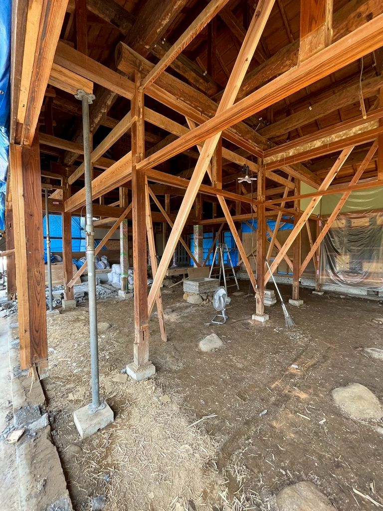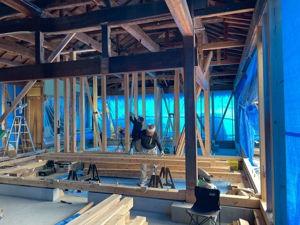 現場では、長年家族を見守ってきた梁や柱を丁寧に補強し、これからの暮らしに合わせた安全で快適な空間へと生まれ変わらせる工事が進んでいます。