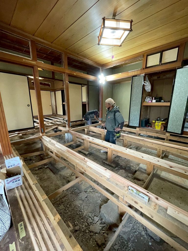 ガレージ付きのバイクスペースや、旅の思い出を飾るリビングを備え、古き良き趣を残しつつ、自分らしいライフスタイルを実現する空間へと進化中。