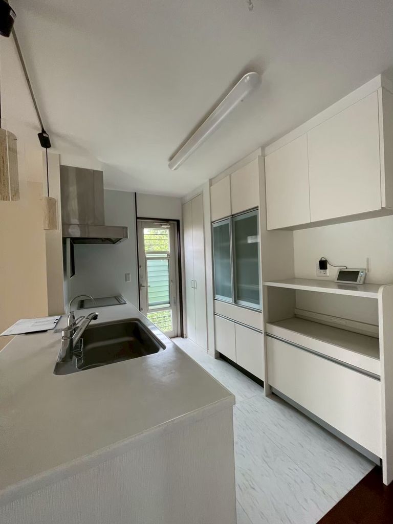 既製の大きな背面収納を撤去し、代わりに造作棚を設置。お気に入りの器や調理道具をディスプレイすることで、まるでカフェのような雰囲気を楽しめる空間に仕上げる予定です。