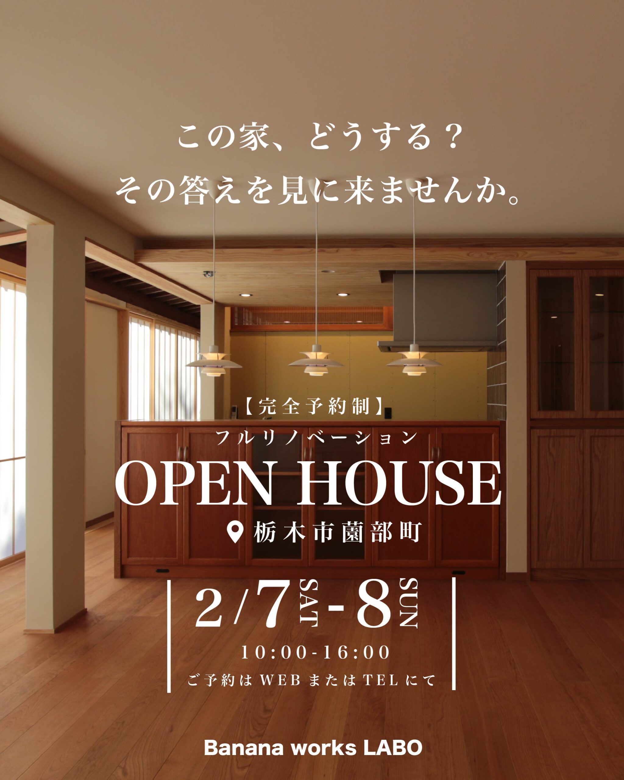 フルリノベーションした築45年のデザイン住宅を観れる貴重な機会です。お住まいに関する不安、悩みを私たちが一緒に解決します。