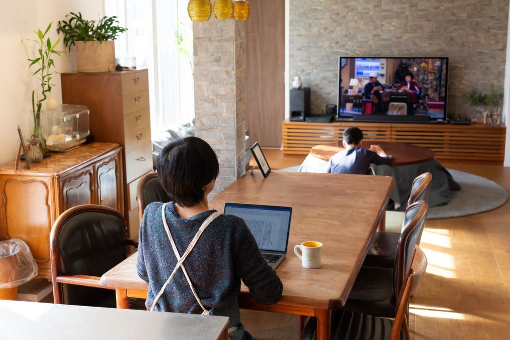 やらなきゃいけないこと、やりたいことがいっぱいで、適度に手を抜くことを“よし”とする。「やれないことは、“すみません”とあきらめちゃう」と、苦手な整理整頓を笑って正当化するところも、彼女らしい。スタイリッシュな空間をキレイにしておくよりも、お気に入りのダイニングテーブルにパソコンを持ち出し、次男とテレビのドラマを鑑賞しながら、小説をしたためる。イイ感じの乱雑さ加減が、なぜかホットする。
