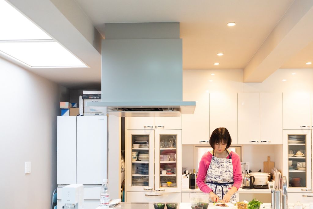 実は、この素敵なLDKは、貴士さんの感謝の気持ちの表れで、4年前にリフォームしたもの。以前は一つの台所を貴士さんの祖母、母と3人で使っていたのだとか。「子育て、両親祖母と従業員の世話を嫌がらずにやってくれる人はそうはいないと気付いた。10人家族を食で楽しくしようとがんばる姿に、ずっと何かしてやりたかった。料理教室で学んだおもてなし料理やテーブルコーディネートを自宅でも実践できるように、キッチンをリフォームし、やがて料理教室を開きたいという理英の夢を応援したい」と。