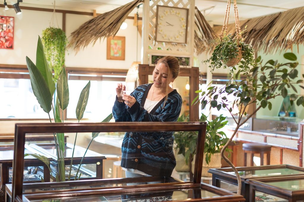 「元々ハワイアンジュエリーは気にいっていたけど、仕事をするようになってから、職人さんの想いや仕事ぶり、その歴史なども学ばせてもらえたことはラッキー」と、単なる販売だけではなく、信頼していろいろなことをさせてもらえたことが、今に大きく役立っている。クレームの処理では、誠意をもって対応する姿勢を学び、結果、ビジネスの幅広い経験と知識を得ることができた。「何よりも、観光客の方の大切な思い出のお手伝いをさせてもらえて楽しかった」とやりがいも実感。
