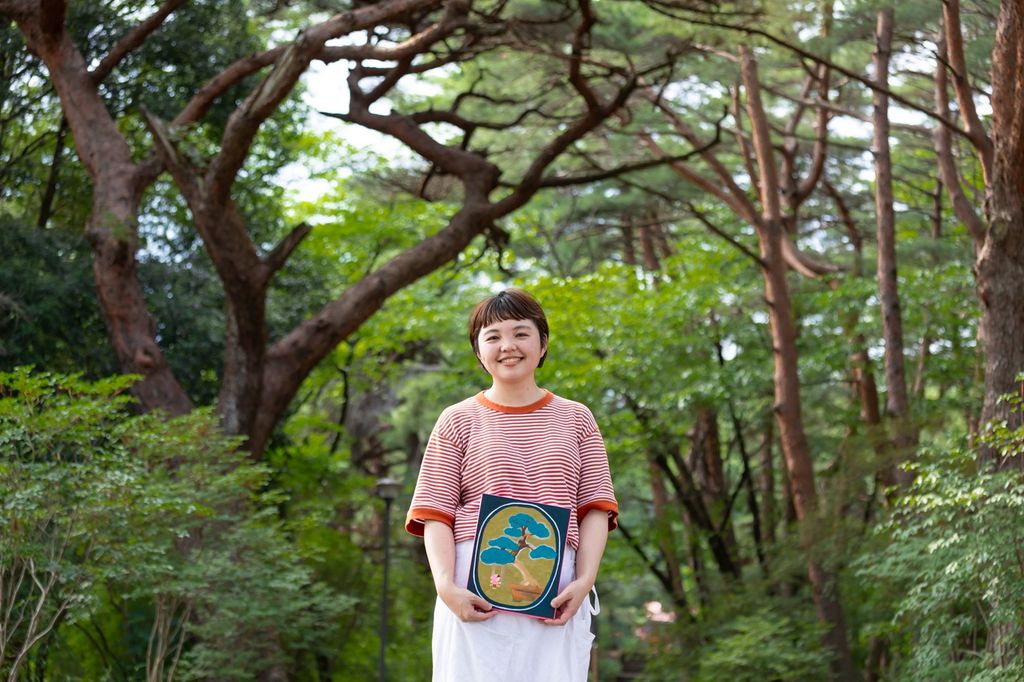 「出産してから、今まで目が向かなかったものにも目がとまるようになり、足元の小さなものにも気づくようになった。子どもの眼差しで物事を見ると、今まで想像もできなかったやさしい世界が広がり、色味も深みを増したと感じる」と自己分析する。「見た人が想像してくれるのが嬉しい」と、描き方や形にこだわらず、自由に作品を創りあげている。