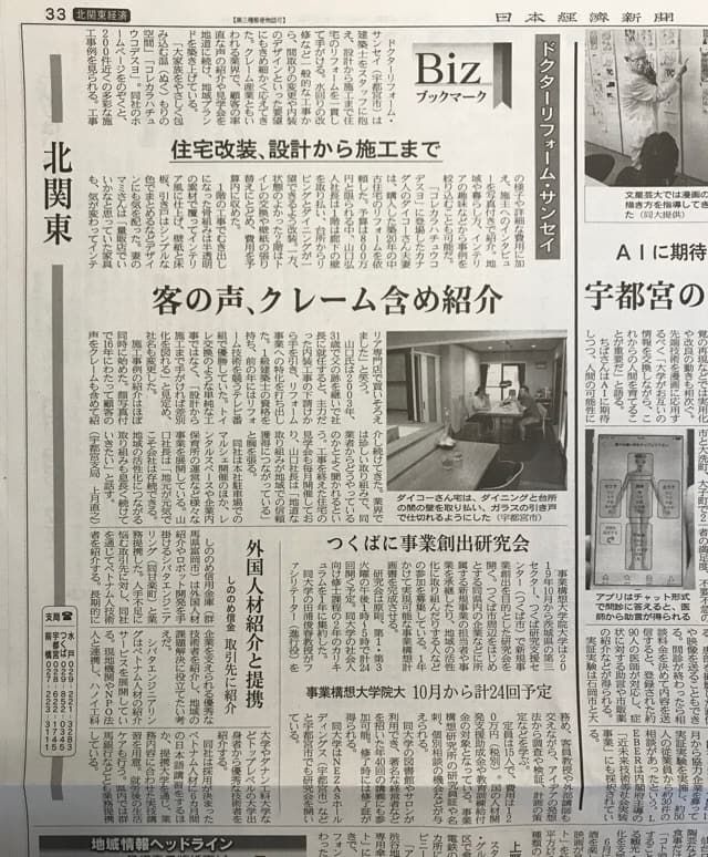 日本経済新聞に掲載していただきました