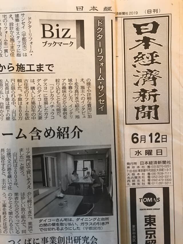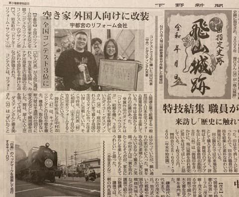 下野新聞『コロナや時代の変化対応 リフォーム3部門最高賞』