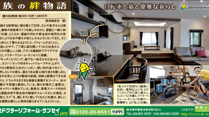 自転車と猫を愛するご夫妻による 定年後も安心して暮らせる住まいへのフルリノベーシ…