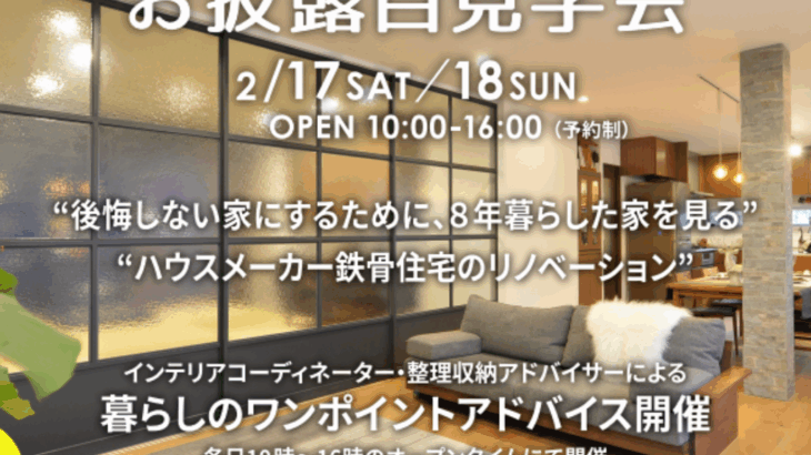 2月17(土)18(日)開催するイベントのお知らせ。 今回の内見会は、当初築30…