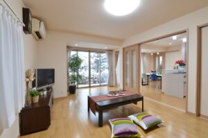 居間、台所、茶の間の3部屋と縁側、押入れをつなげてワンフロアにしたことで、期待以上の広さを確保。それと共に北側を向いていたうす暗く閉鎖感のあったキッチンは、向きを変え、みんなが集う空間の真ん中に位置することに。「料理をしながらテレビや庭が見えて、家族との会話もはずみ、明るくて快適」と奥様は大喜び。家全体の耐震補強をし、公的に補助金も支援された。また、断熱材を入れるなど目に見えない場所にも手を入れてもらい「暖かくて安心。サンセイさんに頼んでよかった」と満足そう。