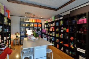味わいのある古民家に一歩足を踏み入れると、カラフルな容器や調理器具、自然食品や化粧品などがずらりと並ぶ。全てタッパーウェアの商品。そして、たくさんのステンドグラスランプの灯が、温もりあふれる空間を創り出し、主の高根沢惠子さんの人柄を感じさせている。ここは、もともと古物商を営んでいた方の住まい。縁あって高根沢さんが譲り受け、1階部分をドクターリフォームサンセイの手でリフォームし、“古民家収納アイテムショールーム”として生まれ変わった。