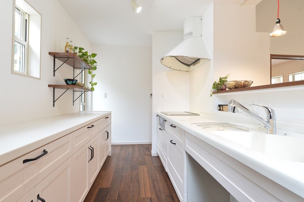 →無垢のフローリングを敷き込み、自然素材を設定。