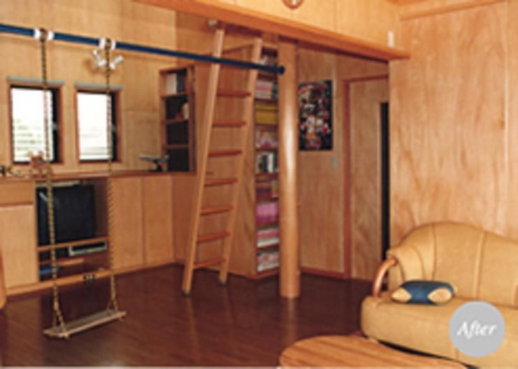 様々な正確の住まいがあれど、家の中に子供の遊び場がある家なんて、そうそうお目にかかれるものではありません。なんと、この家、2階に登り棒やブランコ、さらにはロフトへ上がるためのハシゴなどがあるのです。遊び場兼秘密の隠れ場所。子供にとってはワクワクドキドキものの住まいでしょう。