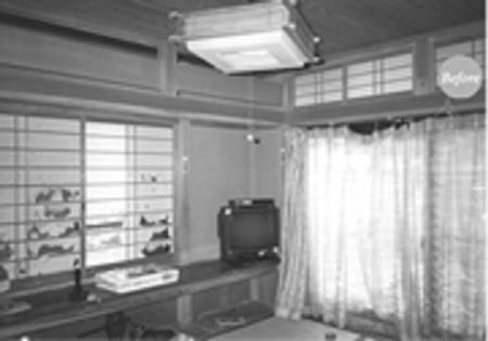 この施工例はそのためにリフォームしたようなものです。ご覧下さい、この変わりよう。特にLDKの県下のすさまじさ。なにげない、普通のリビングが大きな囲炉裏のある部屋に変わってしまいました。天井にめぐらされた竹材から鉄瓶がぶらさがり、古木材が扉や梁に効果的に使われています。