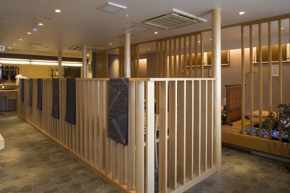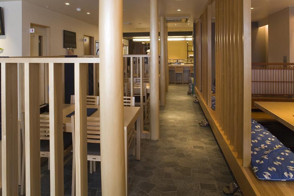 リフォームにあたっては、とにかくこれまでとは180度違う店にしたいということ、そして温かい雰囲気でお客様がゆっくりとくつろげる空間にしたいという要望をもとに、一階を全面的にリフォーム。回転寿司のレーンを撤去し、カウンター席、テーブル席の店内にしました。従来は蛍光灯が多く使用されていましたが、今回は間接照明に工夫をこらして雰囲気のある店内を演出。温かみのある和の空間を感じさせる店内へと生まれ変わりました。