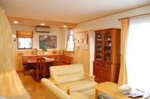 一階の約20畳のLDKに新たにお母様のお部屋を造り、同時にLDKには十分な空間が欲しい、そして収納の充実と、カントリー調の空間にしたいというご要望でした。