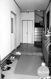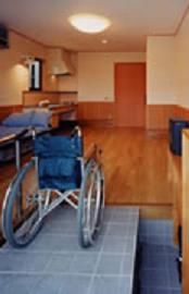 幼児期より進行性の身体障害を持つお嬢様の就職を機に、リフォームを決意しました。リフォームの箇所はお嬢様の部屋、バス・トイレ、洗面所などです。写真のようにお嬢様のお部屋は外から直接入れるようになっています。車椅子でも床に移動できるようスロープがつけられ、床はフラットで障害になる物がありません。お友達を招いて簡単な料理ができるようにミニキッチンまで設けられています。