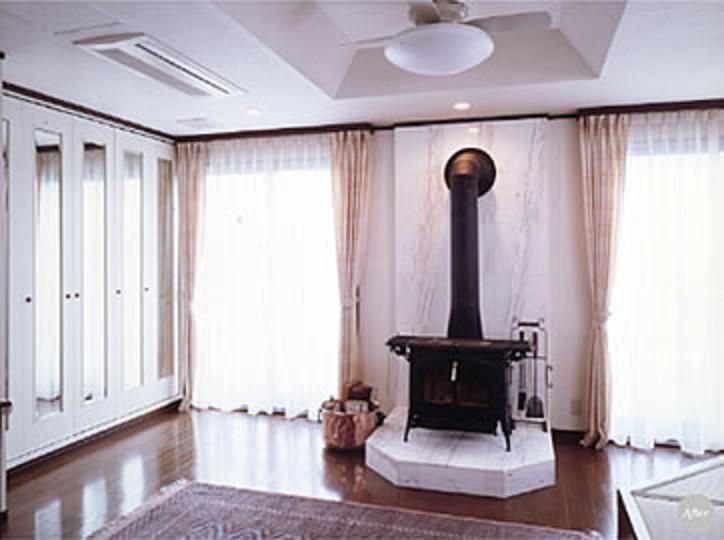 リフォーム前の間取りは、真ん中を廊下が貫き、効率が悪かったので、限られたスペースを有効に使える間取りにすること、併せてリビングの中央に暖炉をしつらえるという施主からの要望がありました。